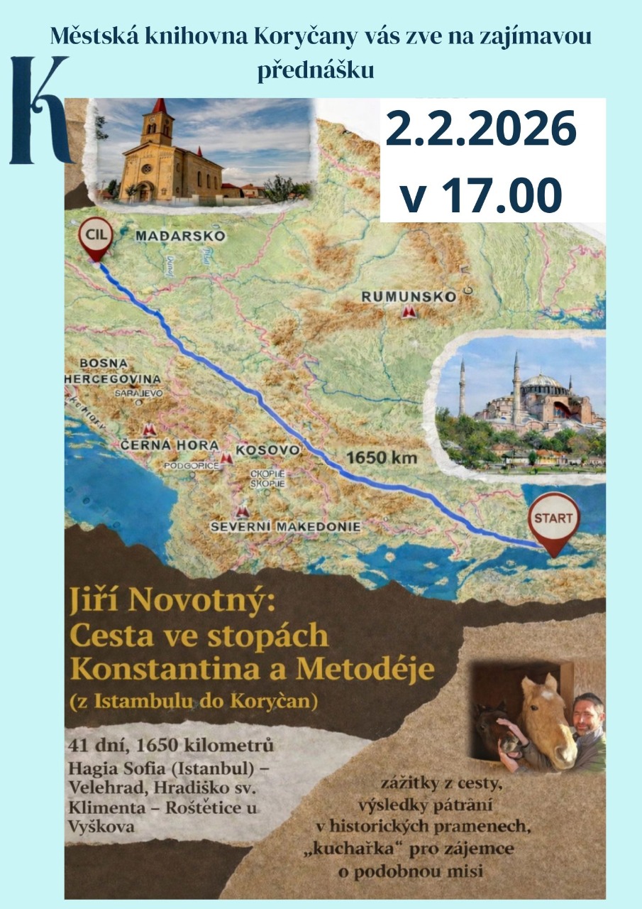 Dovolujeme si vás pozvat na besedu s Jiřím Novotným, který se podělí o své mimořádné putování z Istanbulu až do Koryčan. Svou cestu absolvoval ve stopách Konstantina a Metoděje a přiblíží nejen samotnou trasu, ale i historické a osobní souvislosti této poutě.